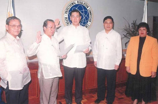 Lazaro (center) takes his oath as chairman of the Board of Civil Engineering before the Professional Regulation Commission in 1997